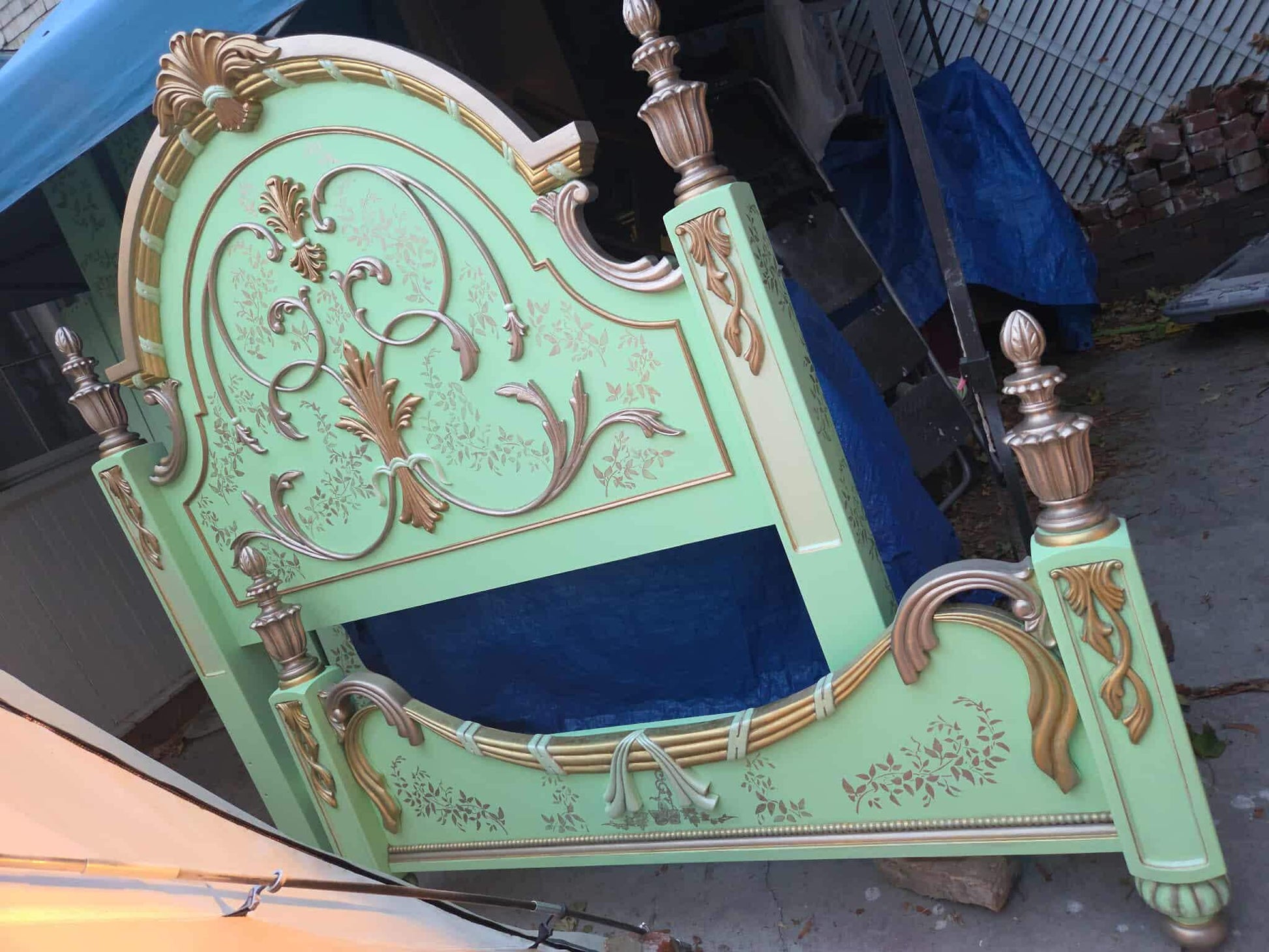 Custom Order Option: Alternative Version Antique French Style Mint Leaves-Themed Art Upcycled Vintage Bedroom Furniture- Bedframe Set