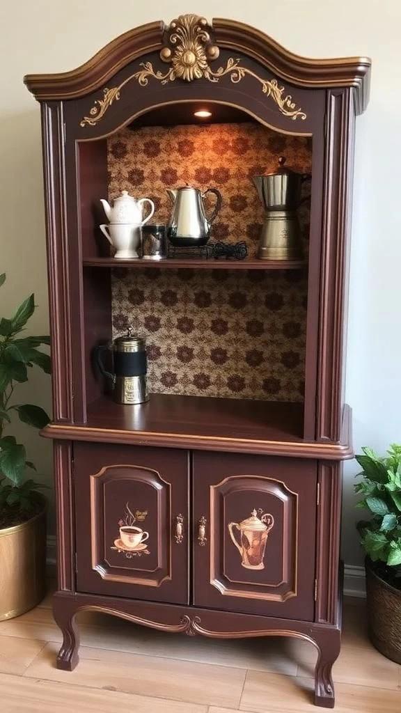Custom Order Option: Antique Upcycled Armoire Coffee Hutch Tea Nook Beverage Bar Java Station Storage Dining Room Cabinet - Chocolate Drips