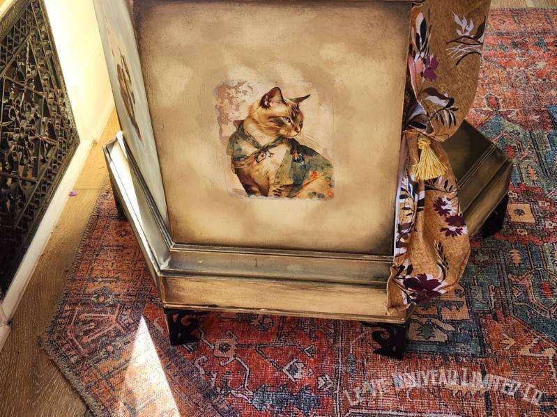 Stunning Japanese Cat artwork decoupaged Cat House with hand-painted aged-look on a fabulous vintage 70s Solid Wood hexagon end table in perfect condition with added furniture legs and curtains tied back with lovely tassels, making this the purrfect home for your superior feline and adding a touch of beautiful traditional Japanese art to your home. We carefully prepare our furniture pieces ourselves for delivery with uShip. Thank you for looking at our listing! Measurements: 28"L 25"w 20"h. Local pickup is available in Salt Lake City, UT. We also provide personal local delivery within a 25-mile radius free!
